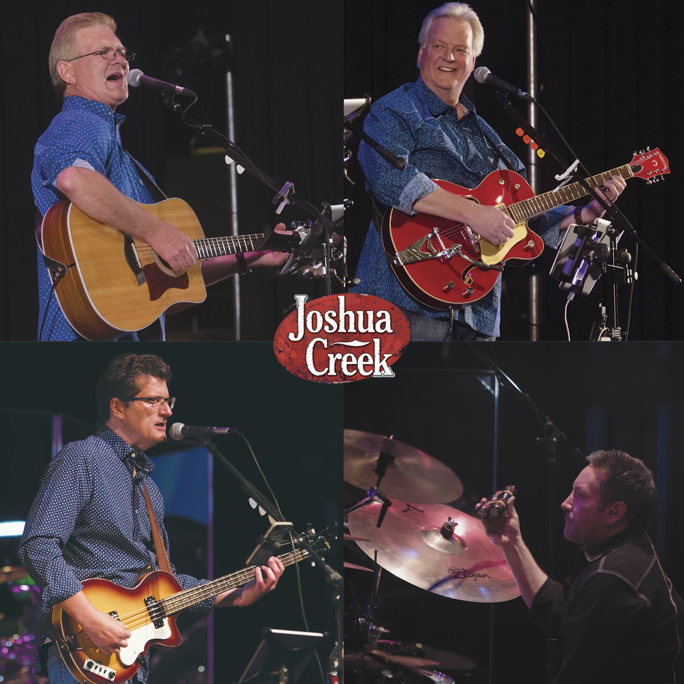 Known for their story songs and soaring vocals, Joshua Creek has released 7 CDs since 2005. They’ve performed in front of a quarter million people throughout the Western United States. Their song, “What Kinda Car,” hit No 1. on the Christian-Country charts in the south and their songs “I Love You Son,” “Promise You’ll Stay” and others are heard on Sunday radio shows in the Rocky Mountain area. Pearl Award winners for songwriters of the year, Joshua Creek is known for leaving audiences both laughing and crying with their own brand of storytelling at venues ranging from Dodger Stadium, to Abravanal Hall, to The Tabernacle at Temple Square.Joshua Creek is: Jeff Hinton, lead vocals/guitar; Quint Randle, backing vocals/bass; Ron Saltmarsh, lead guitar/musical director/backing vocals; James Hollister, drums/cajon.