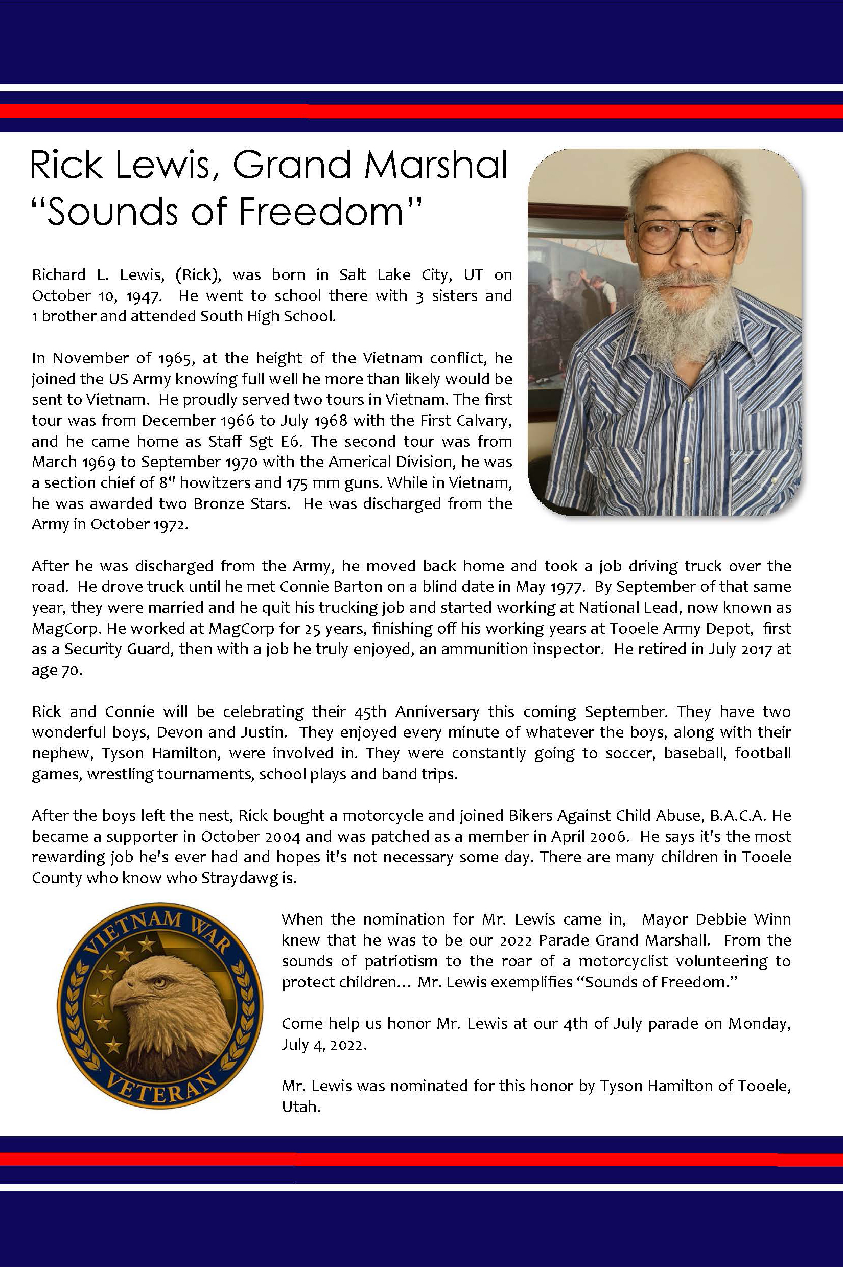 We are excited to announce Fred Barker as this year’s Tooele City 4th of July Parade Grand Marshal. We are honored to recognize and thank Fred for his many years of service and dedication to our country and local community.