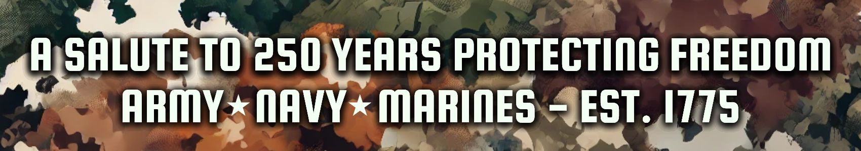 "A Salute to 250 Years Protecting Freedom — ArmyNavyMarines — Est. 1775!"