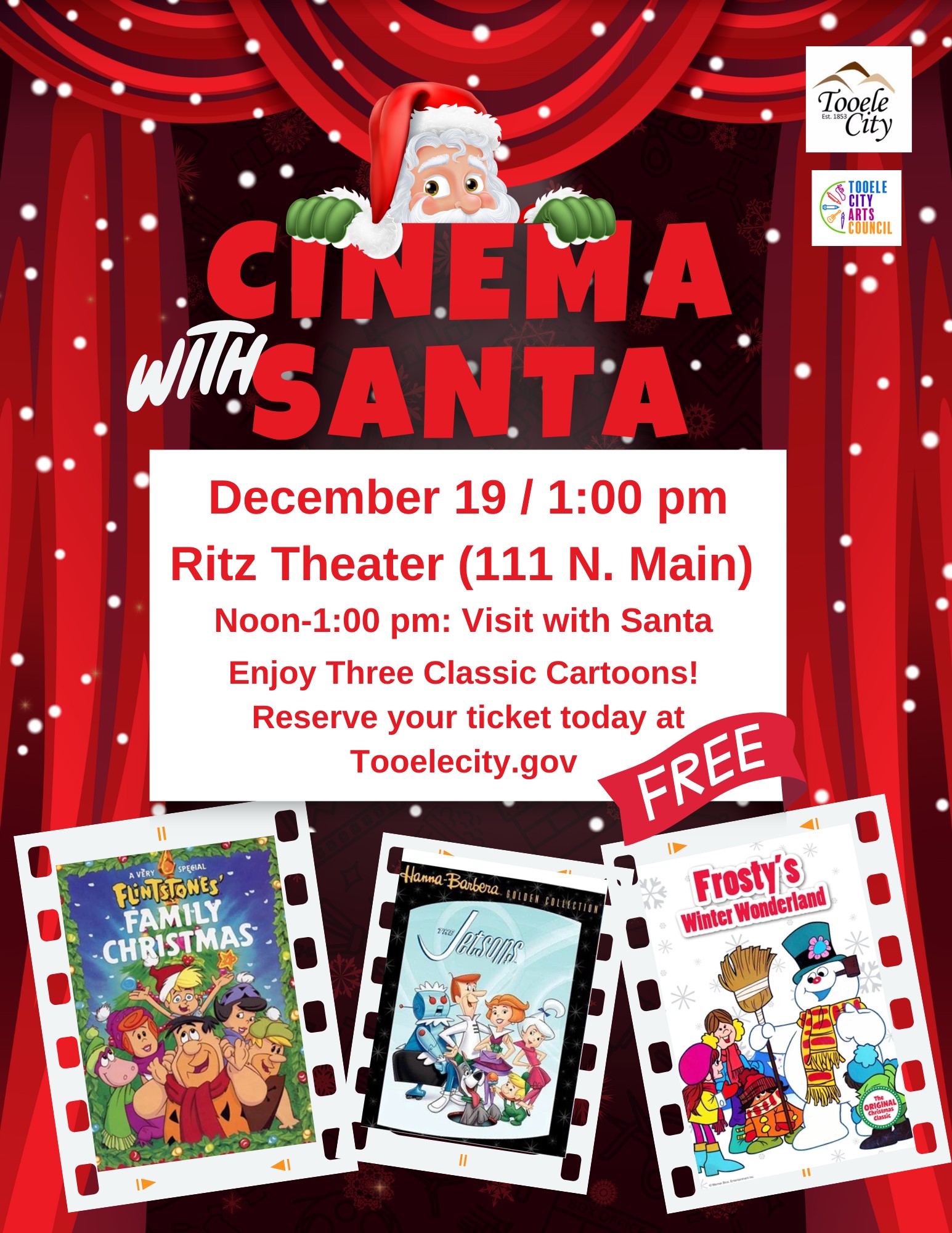 Come and visit with Santa and enjoy three classic cartoons: A Very Special Flintstones' Family Christmas, The Jetsons, and Frosty's Winter Wonderland.