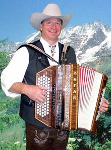 Kerry Christensen is not your typical yodeler. His concerts and events this year will take him to as many as 23 US states and two or three countries internationally. Kerry spent two years in the country of Austria right out of high school. There he became interested in the alpine yodeling art. After mastering this difficult medium he was asked in l983 to move his six member family to Orlando, Florida and use his yodeling skills at Walt Disney World’s Epcot Center. He performed there for almost seven years until 1990. He recently lent his unique classical yodeling talent to a full-length Disney animated feature called “Home on the Range.”