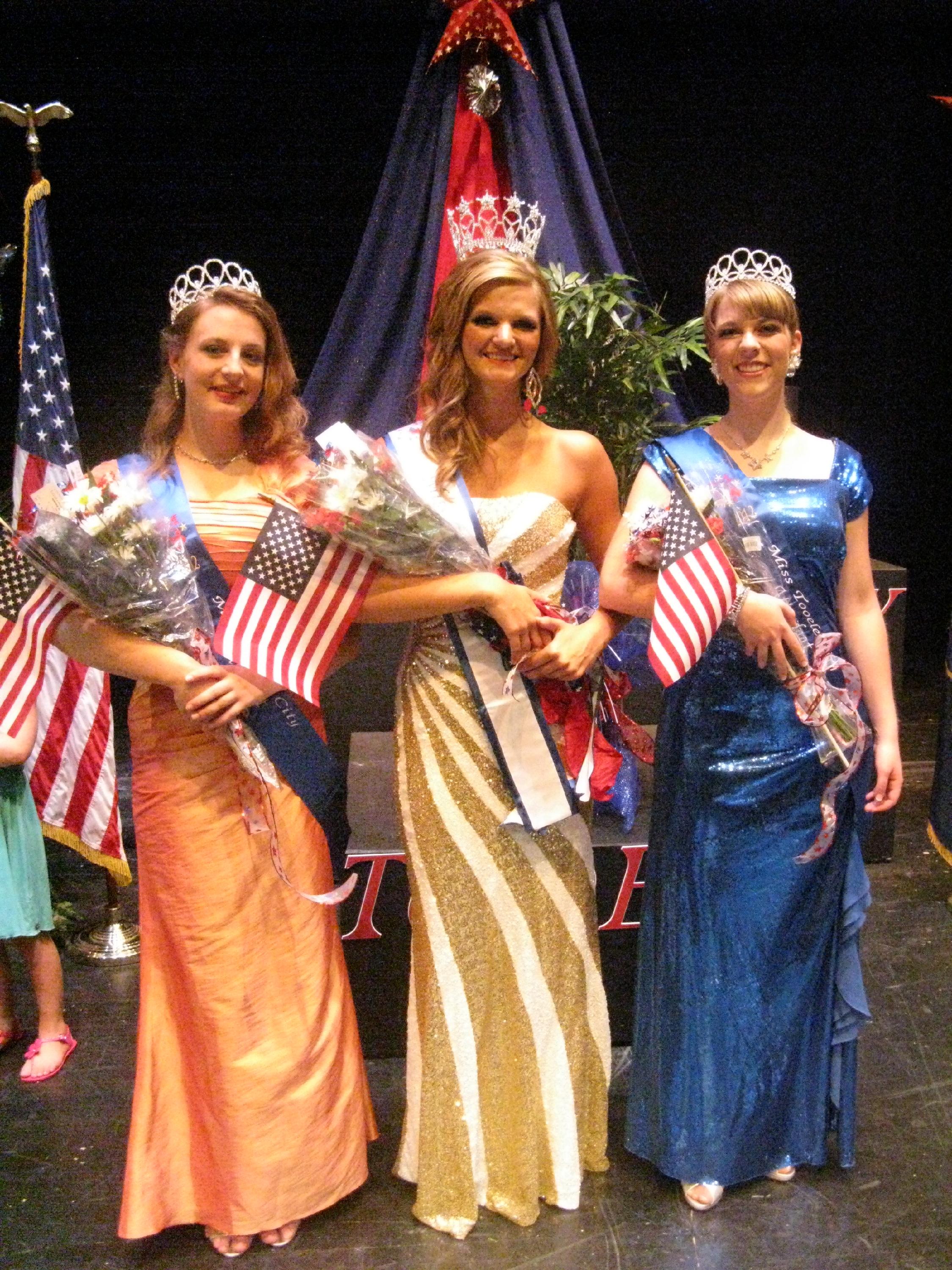 ![]() (L-R): Co-Attendant Eva Ollcot, Miss Tooele City Kat Hawley, Co-Attendant Ayanna Likens |