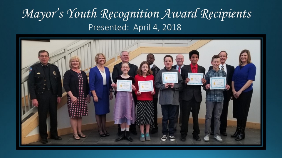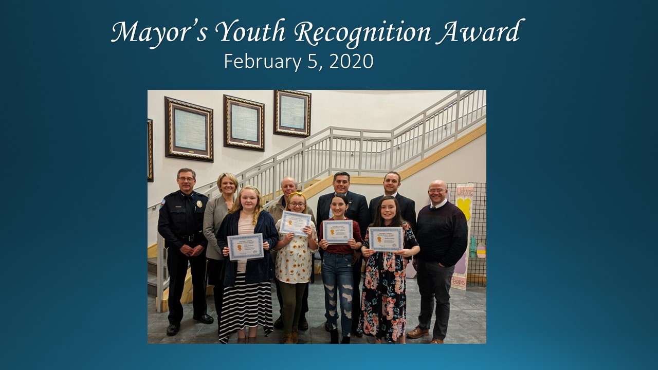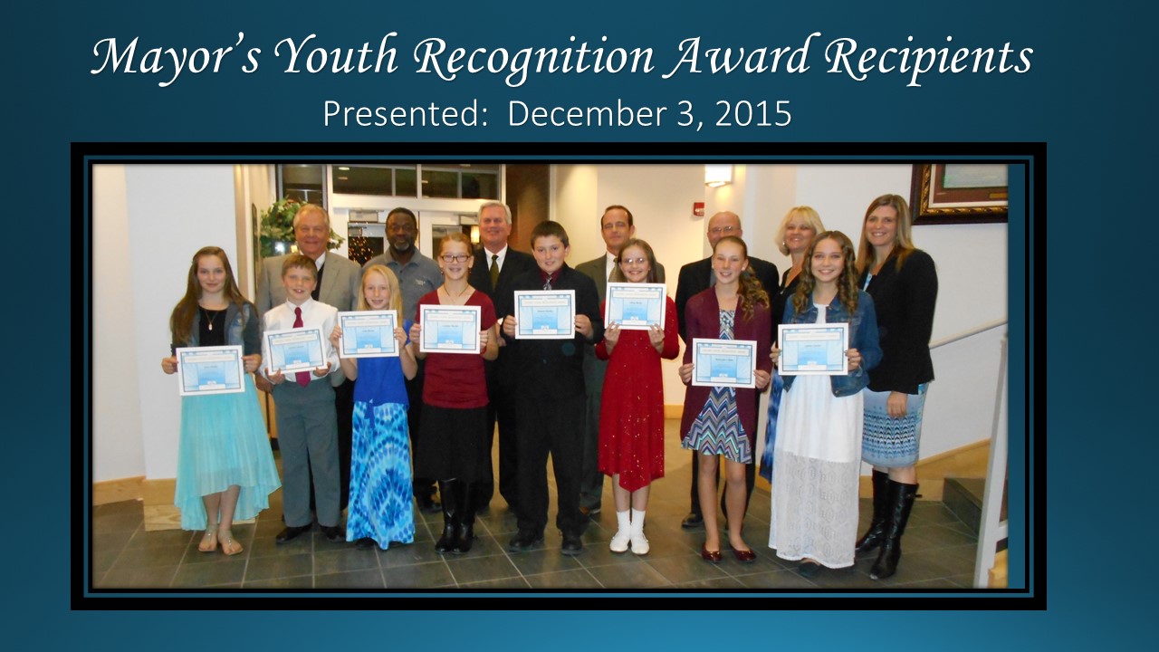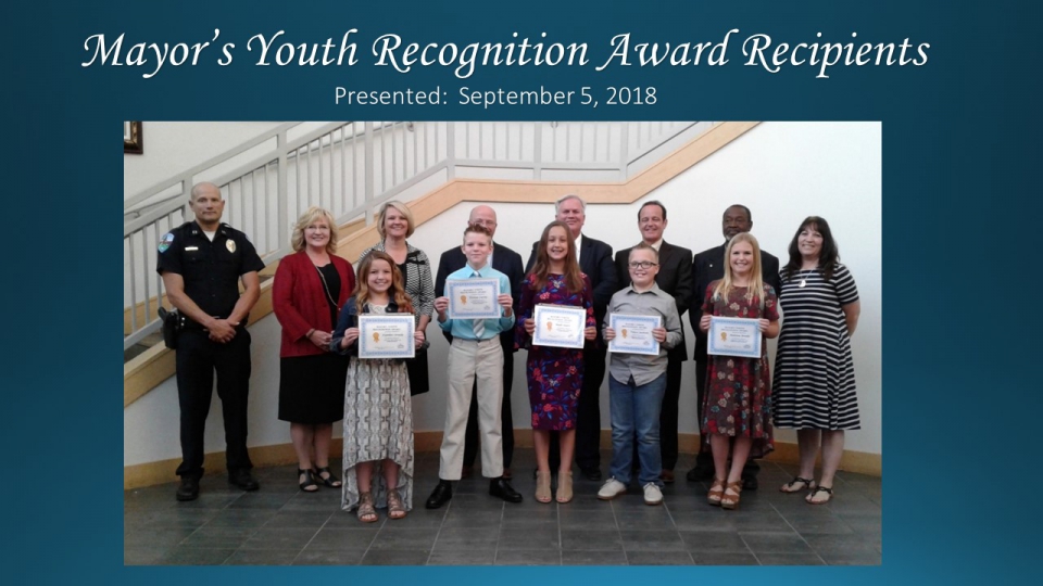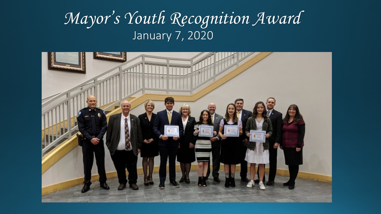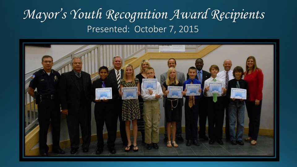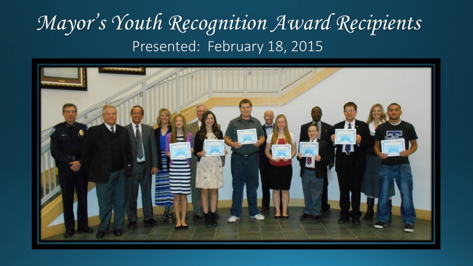 Recipients of the Mayor’s Youth Recognition Award are nominated by their teachers at school to the Community Engagement Division staff. This award is unique because teachers select students on qualities of good citizenship, character, and service. Because of this, it is awarded to students at all different academic levels. The students who are selected are truly great examples to their peers and our community.